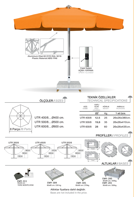 Central Pole: Anodized aluminum with an 84 mm diameter for enhanced strength and corrosion resistance.