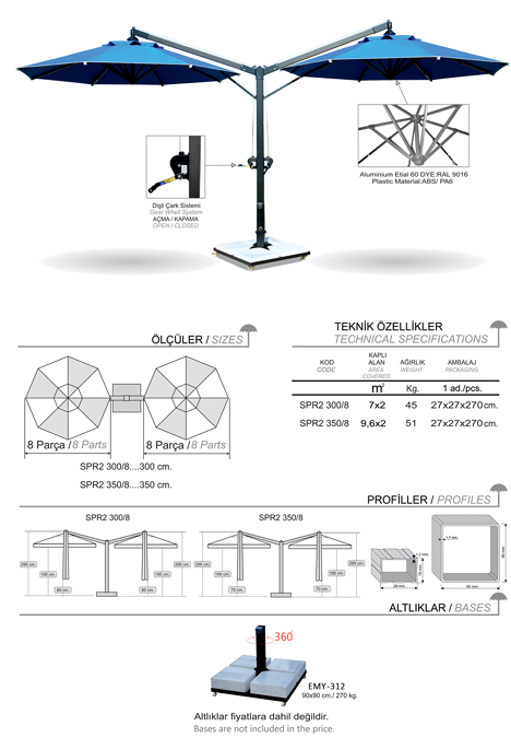 Steel-Rope Gear Mechanism: Specially designed system enables smooth opening and closing of the umbrella arms.